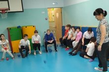 Актеры Студии «Скоморошек» используют тренинги с мячиками. ПДО Ладыгина Ю. В.