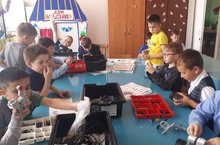 В студии начального технического творчества "РОБОЗВУК" учащиеся собрали модель робота "Тягач" 09.10.2019
