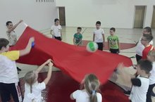 Учащиеся секции "Волейбол" развивали физические качества, внимание и мышление посредством подвижной игры "Веселый парашют". 19.12.2018