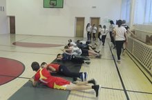 Учащиеся секции оздоровительной гимнастики "Здрайверы" выполняли упражнения на гимнастической скамейке для мышц рук и плечевого пояса, упражнения на силу и равновесие. 10.12.2018