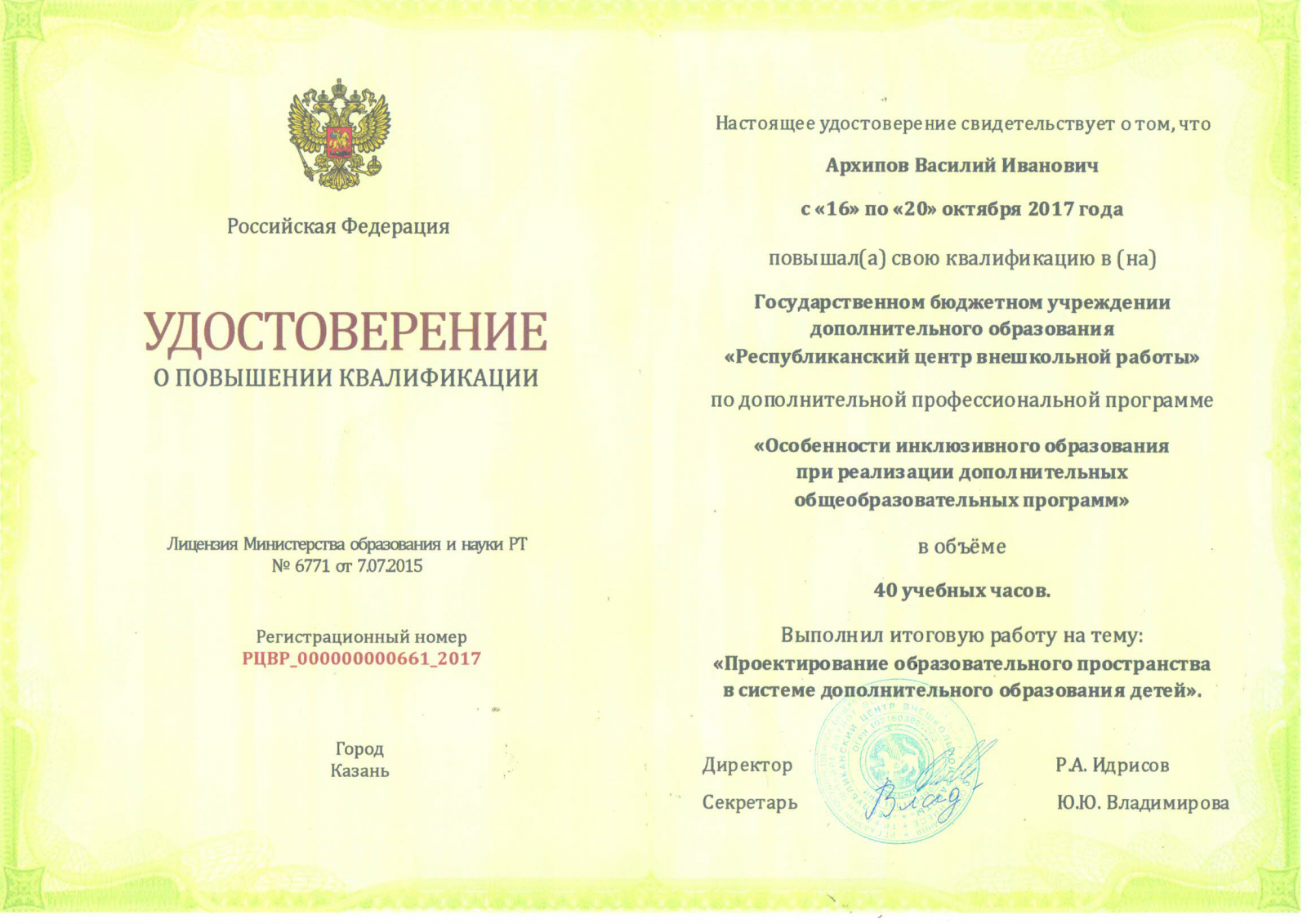 Архипов В.И. "Особенности инклюзивного образования при реализации дополнительных общеобразовательных программ"