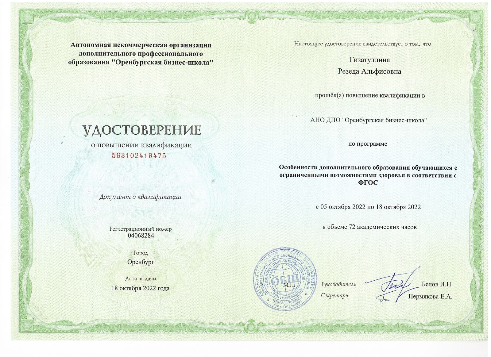 Гизатуллина Р.А. "Особенности дополнительного образования обучающихся с ограниченными возможностями здоровья в соответствии ФГОС"