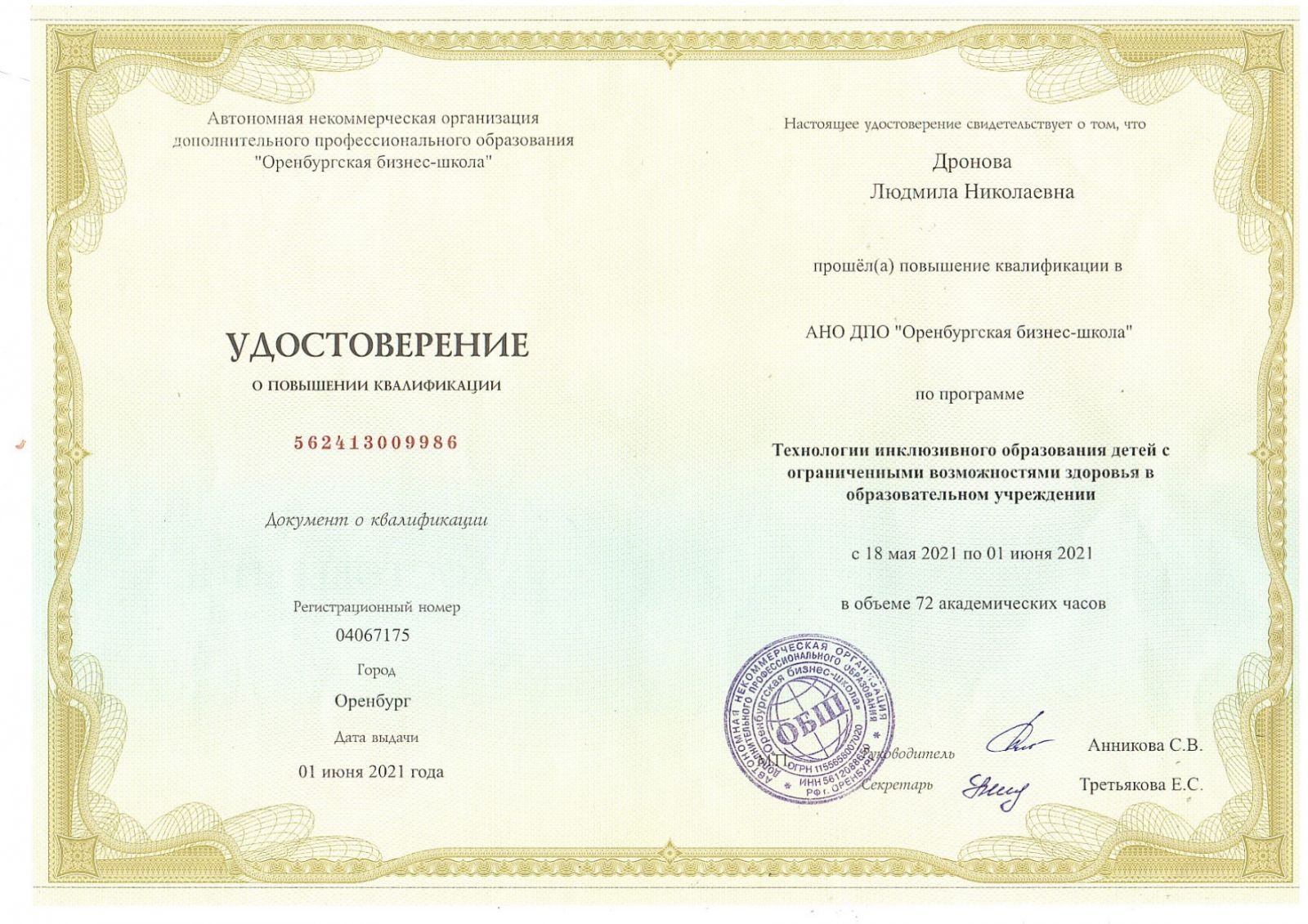 Дронова Л.Н. "Технология инклюзивного образования детей с ограниченными возможностями здоровья в образовательном учреждении" ,