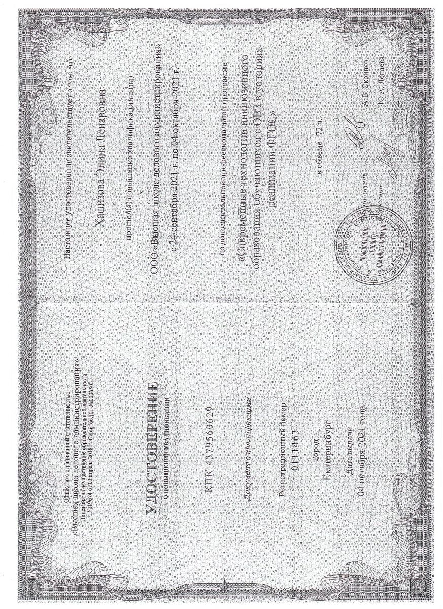 Хафизова Э.Л. "Современные технологии инклюзивного образования обучающихся с ОВЗ в условиях реализации ФГОС"