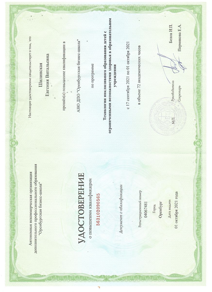 Шилинская Е.В. "Технология инклюзивного образования детей с ограниченными возможностями здоровья в образовательном учреждении"