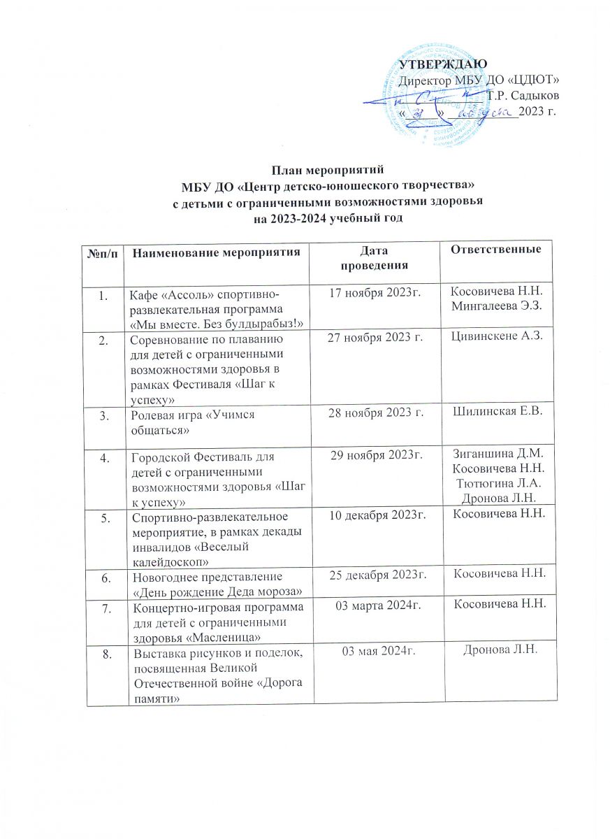 План мероприятий с детьми с ОВЗ на 2023-2024 уч.год