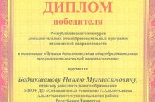 Подведены результаты на основании рейтинга оценки деятельности образовательных организаций дополнительного образования детей по итогам 2016/2017 учебного года в номинации «Лучший директор образовательной организации дополнительного образования». «Профильные образовательные организации дополнительного образования технической направленности»:1 место - Бадыкшанов Наиль Мугтасимович, директор МБОУ ДО «Станция юных техников» г. Альметьевска РТ. Поздравляем Наиля Мугтасимовича с заслуженной победой !!!