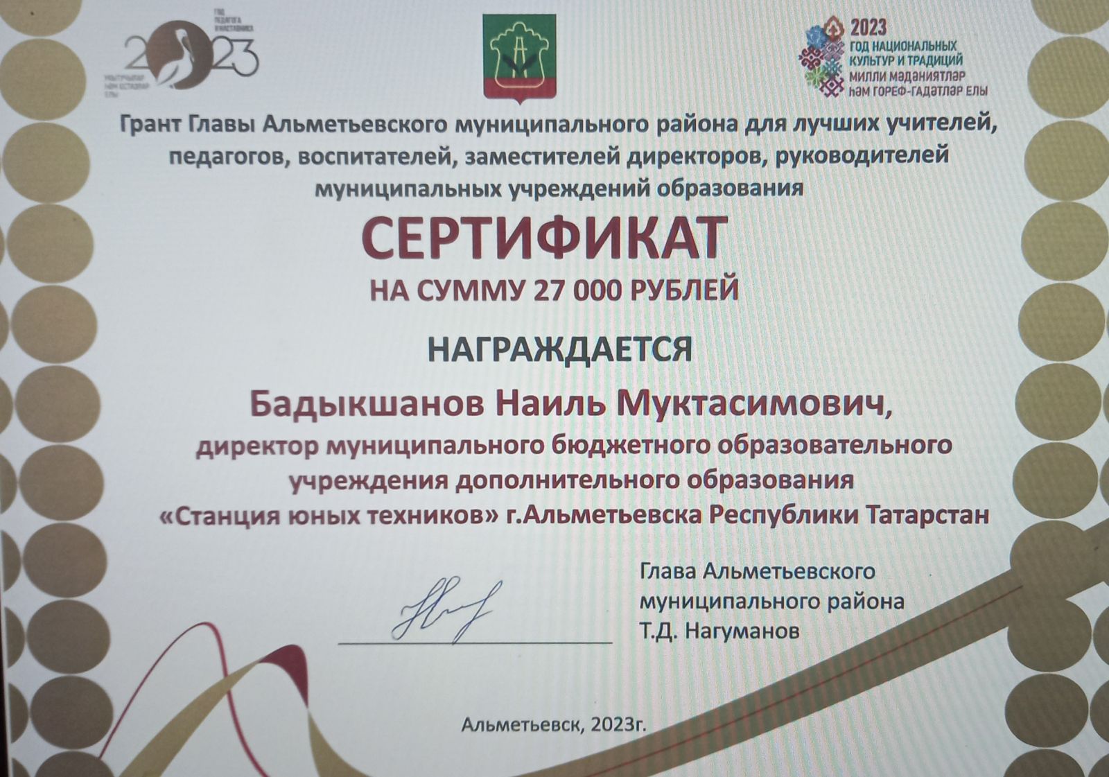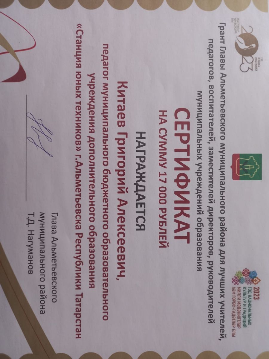 Сертификат на 10000 2023 г.