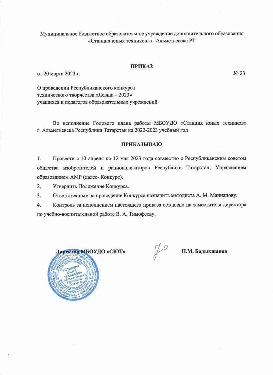 Приказ о проведении республиканских лично-командных соревнований по простейшим зальным авиамоделям