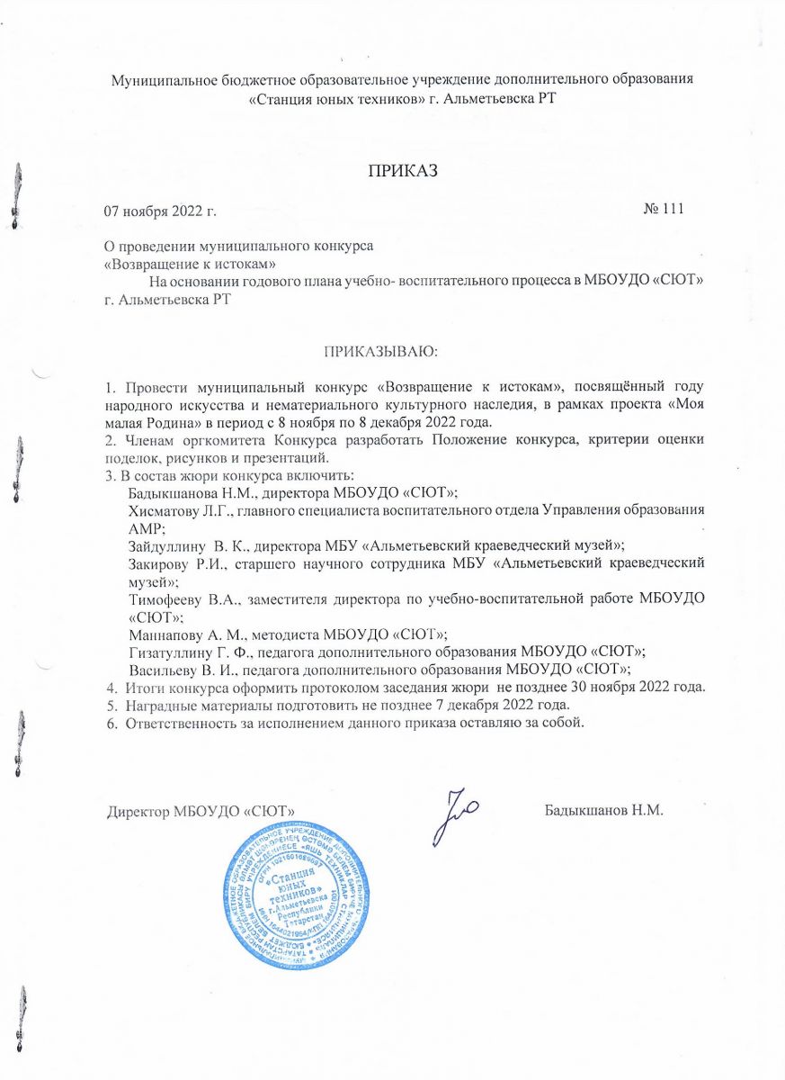 Приказ об итогах городского конкурса детского творчества "Память в сердцах храним"