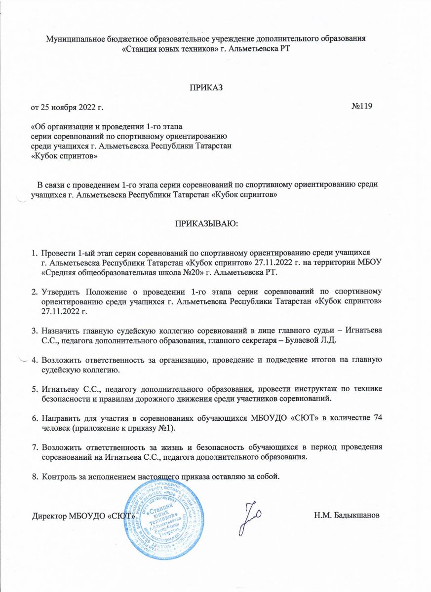 Приказ об итогах 1го этапа серии соревнований по спортивному ориентированию
