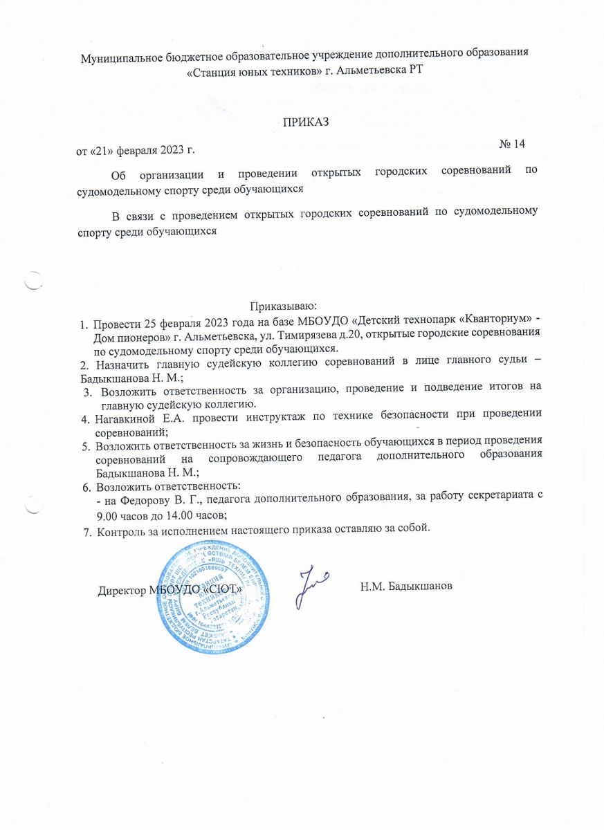Приказ о проведении открытых городских соревнований по судомодельному спорту среди обучающихся