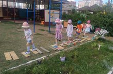 Эффективным средством укрепления здоровья, снижения заболеваемости детей является закаливание организма. Летом в полной мере для закаливания детского организма можно воспользоваться и солнцем, и водой, и воздухом. Недаром говорят: «Солнце, воздух и вода - наши лучшие друзья». Для закаливания мы используем дорожку здоровья. Она продумана таким образом, что по дорожке дети могут ходить босиком, массажируя стопы ног