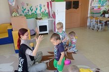 Маша вместе с малышами похлопала, потопала, головкой покачала и весело потанцевала -