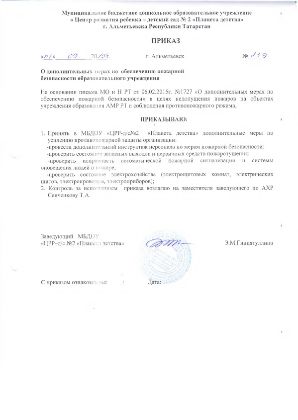 Приказ "О дополнительных мерах по обеспечению пожарной безопасности образовательного учреждения"