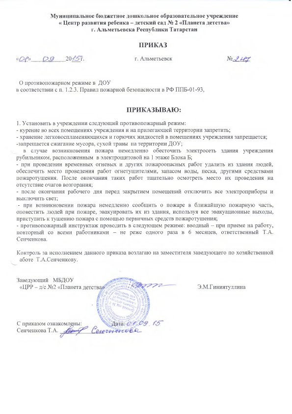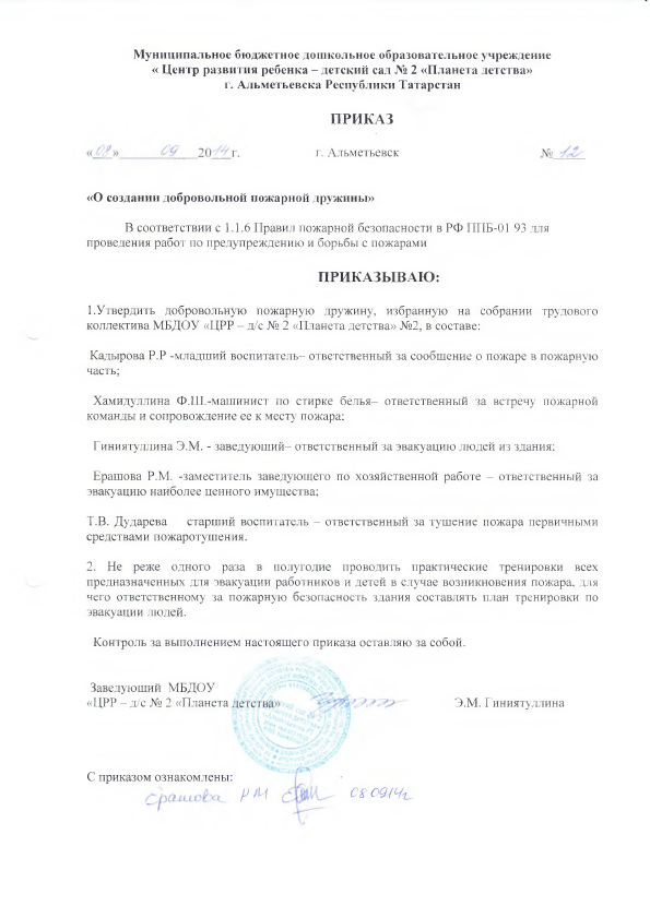 Приказ "О назначении ответственных лиц за пожарную безопасность"