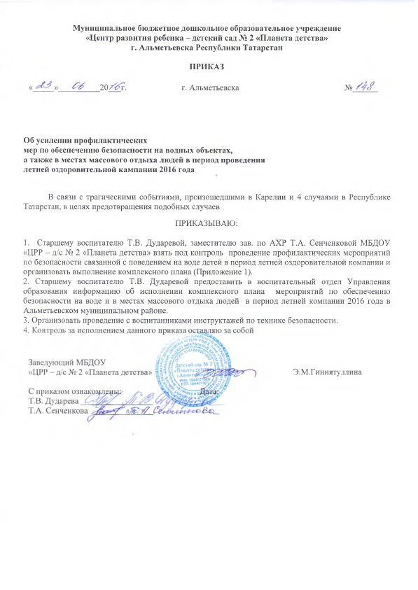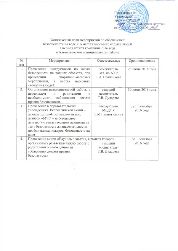 План мероприятий по обеспечению безопасности на воде МБДОУ "ЦРР - д/с № 2 "Планета детства"