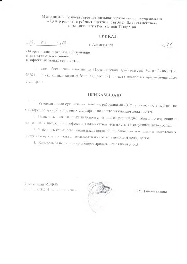 План по внедрению профессиональных стандартов в МБДОУ "ЦРР - д/с № 2 "Планета детства"