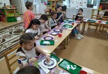 География как часть человеческой культуры является одним из средств, с помощью которых ребенок развивает свой интеллект и позже - собственную личность. В группах есть глобус с континентами без названий, окрашенными в разные цвета. Те же цвета встретятся снова в деревянной карте, континенты из которые можно вынимать и вставлять обратно, а также обводить карандашом, образуя большой пазл. Дети хорошо изучившие работу с глобусом переходят к работе с картами. Знакомству с мировыми континентами, их климатом, флорой и фауной посвящается много недель. В завершении недели каждая группа детского сада "Каракуз" представила материк, выбранный детьми на Фестивале континентов.
