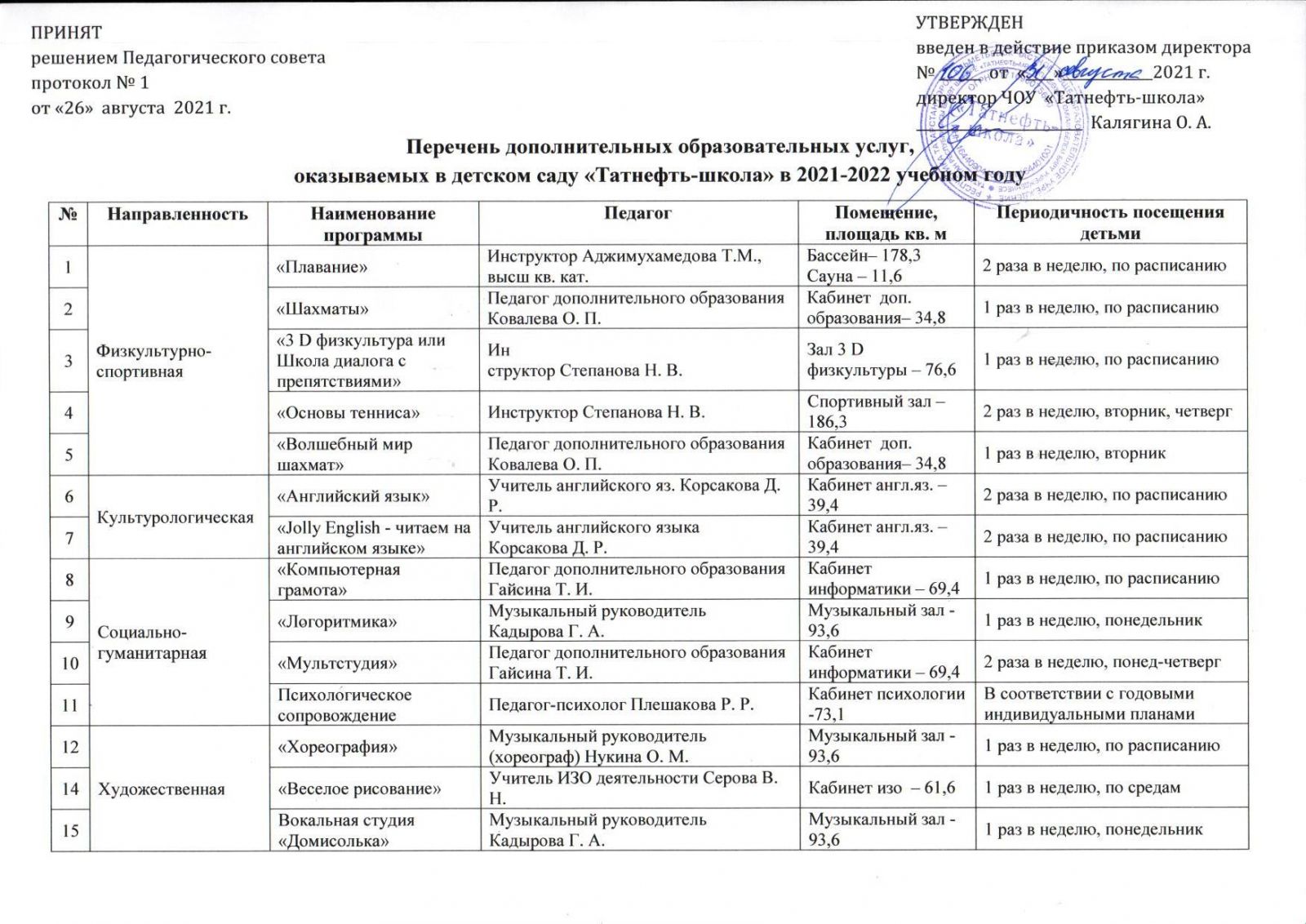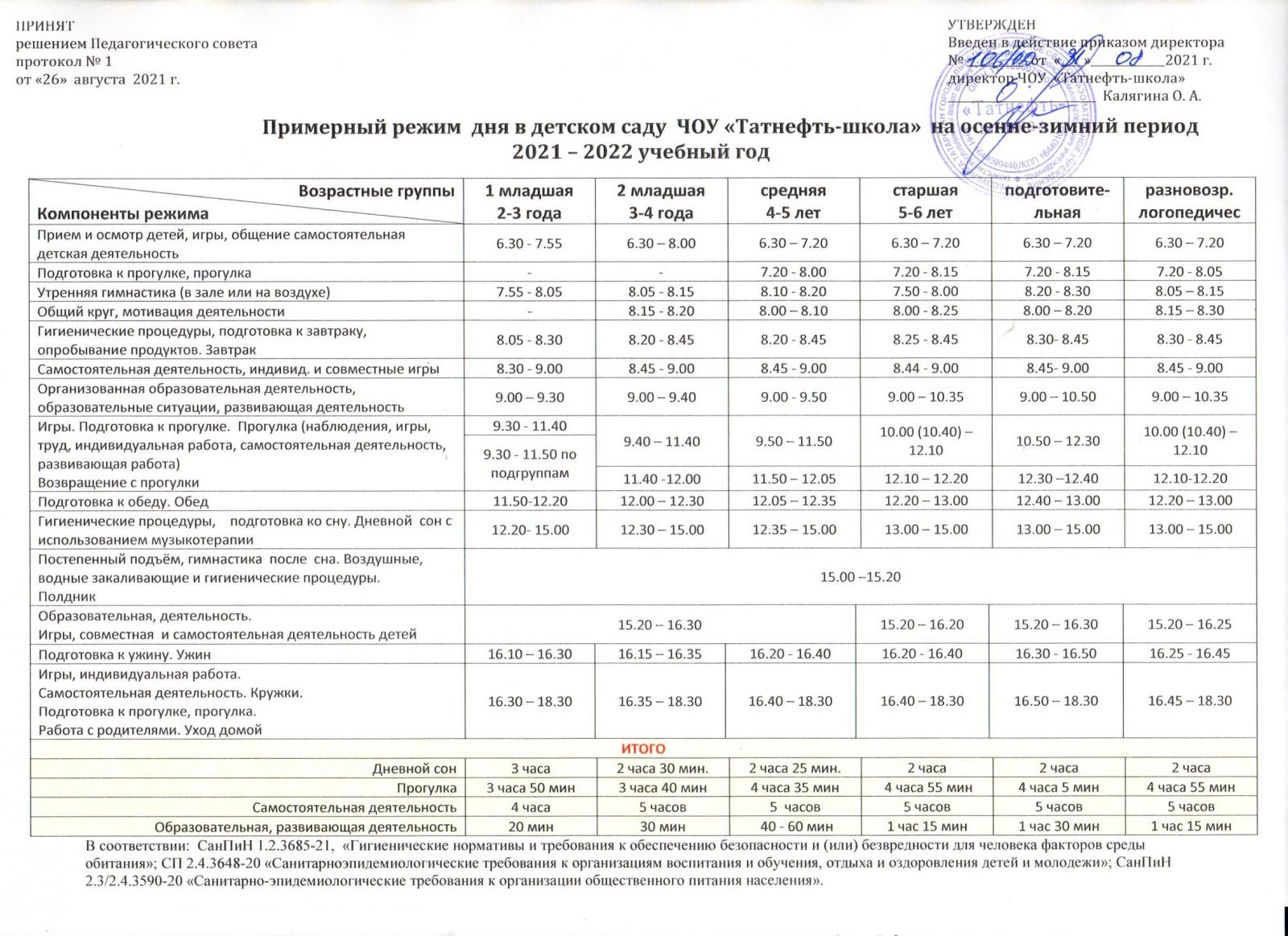 Календарный учебный график детского сада ЧОУ "Татнефть-школа" на 2021-2022 учебный год