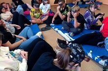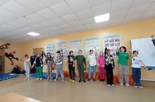 Сегодня в программе были: практикование навыков оказания первой помощи, настольные игры и игра в волейбол. -
