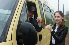 Ребята 10 класса раздавали георгиевские ленты , которые останавливались у школы.