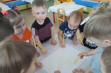 Прошло занятие по художественно-эстетическому развитию (лепка) на тему:"Зёрнышки для цыплят". Дети продолжали учиться работать с пластилином, отщипывать мелкие кусочки.