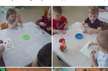 Сегодня дети учились составлять узор из кружков и квадратиков на бумажной салфетке квадратной формы. Младшая группа "Звёздочки".