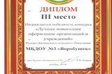 Диплом за 3 место к онкурсе "Лучшее новогоднее оформление организаций и учреждений" Русско - Акташского сельского Поселения
