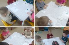 Сегодня прошло занятие во второй группе раннего возраста по лепке на тему: "Снеговичок". Продолжали знакомить детей с назначением пластилина, порядке работы с ним; различать предметы круглой формы, любоваться выполненной работой.