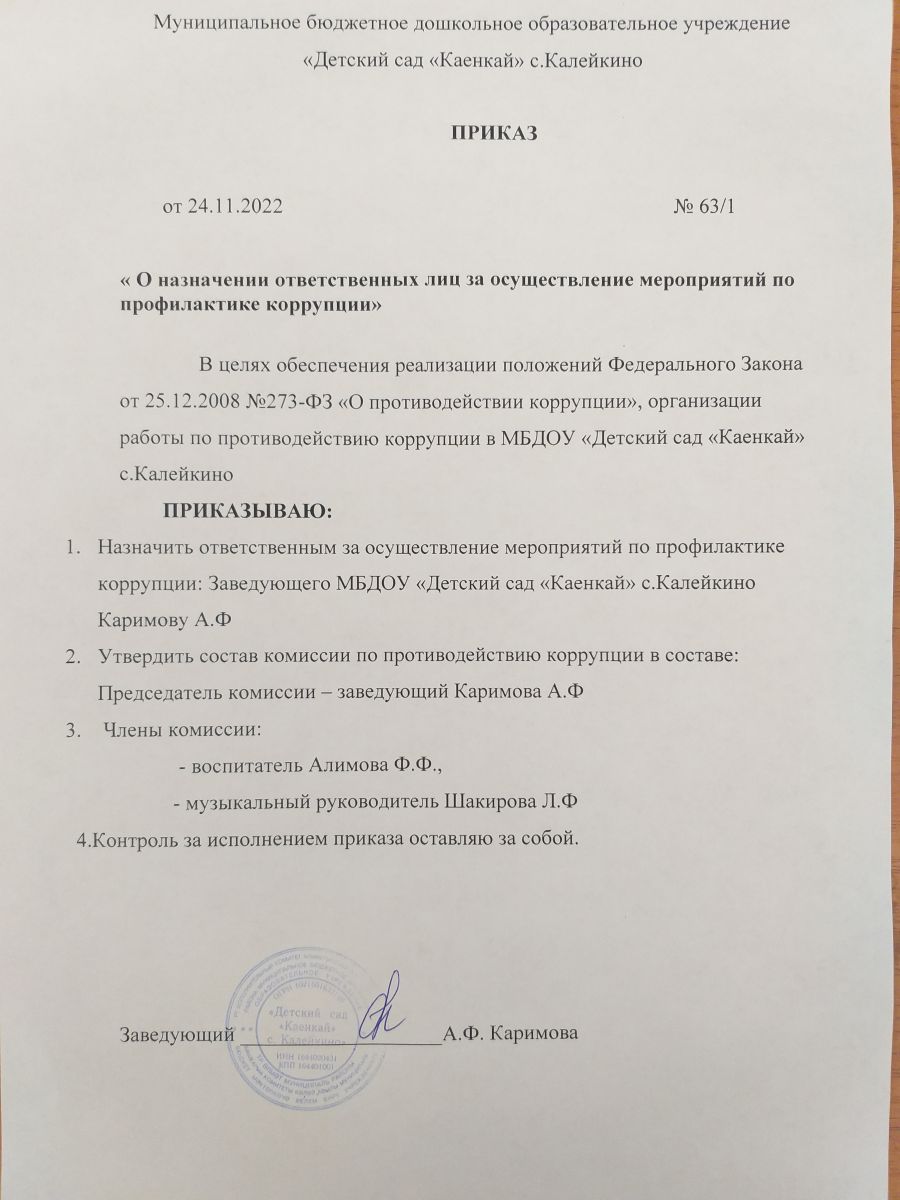 Приказ о недопущении незаконных сборов денежных средств и утверждение планов мероприятий на 2023 год