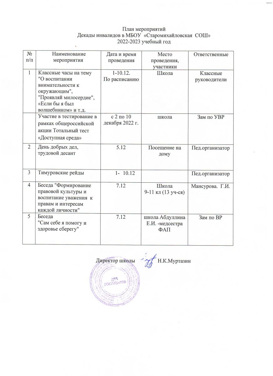 План мероприятий декады инвалидов