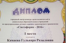 Поздравляем Камаеву Гульнару Разыловну с заслуженной победой в смотр-конкурсе "Светофорик -2016"!!!!! 24.12.2016