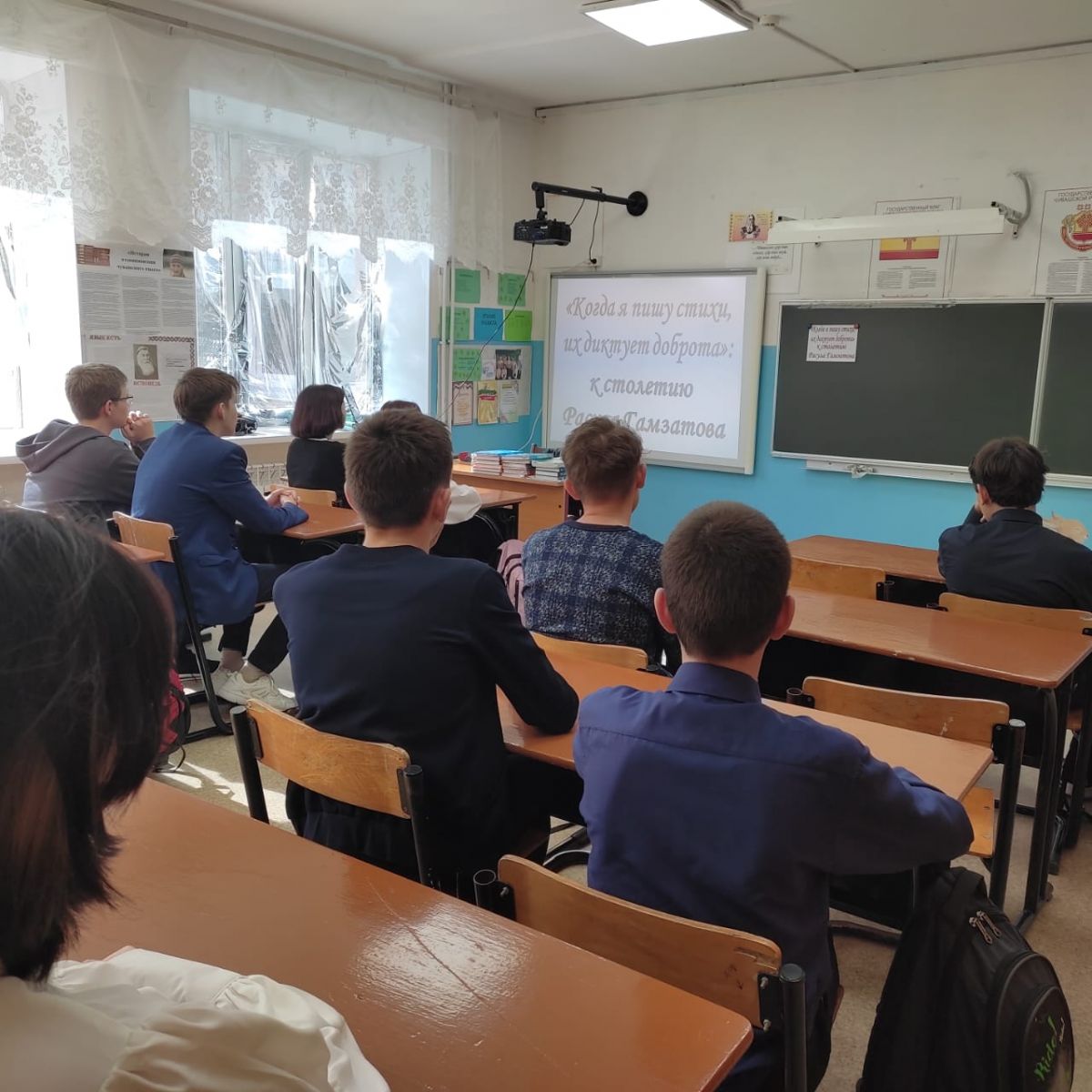 19 сентября в 8-11 классах был проведен урок "Когда я пишу стихи, их диктует доброта: к столетию Расула Гамзатова"