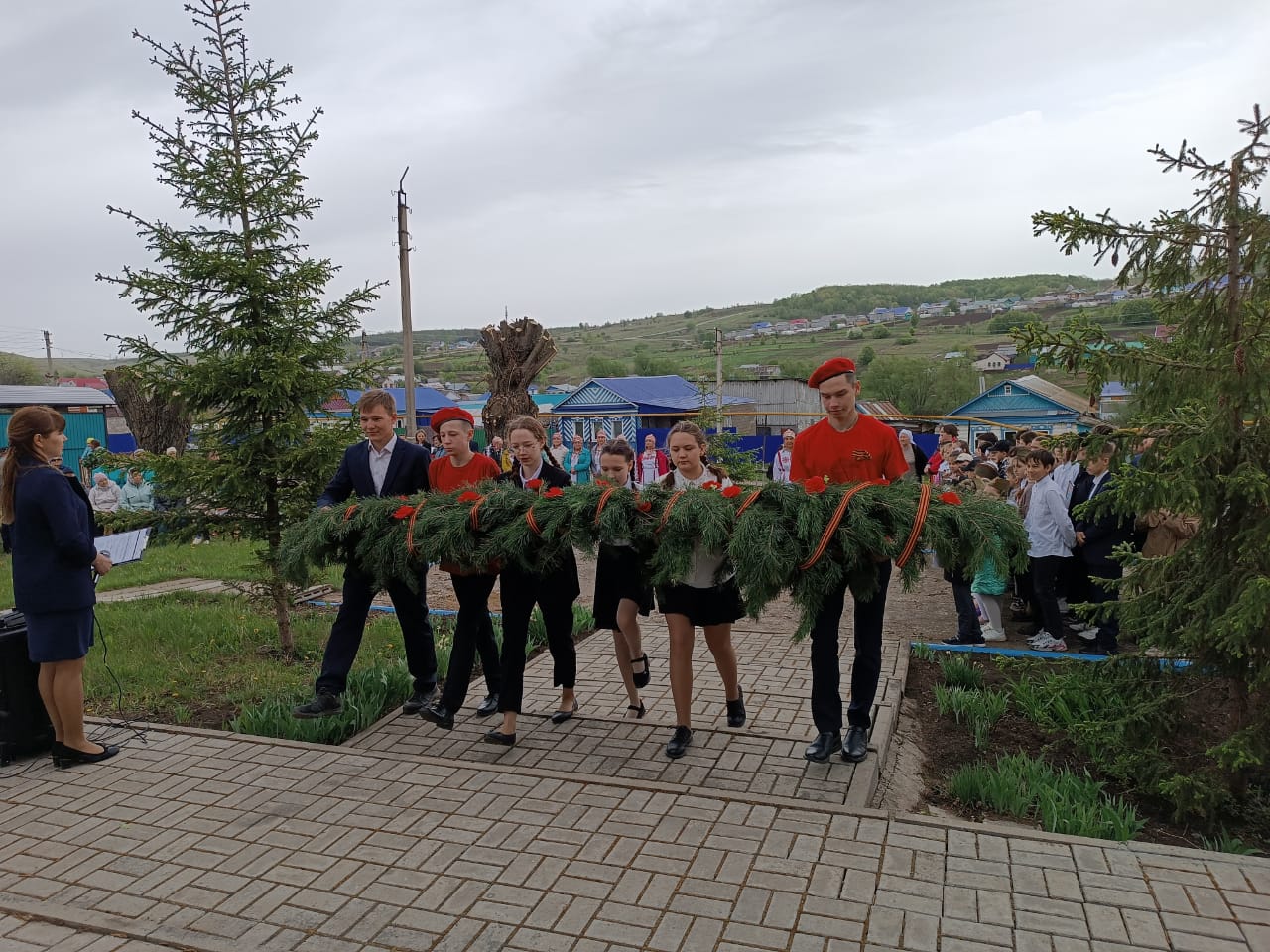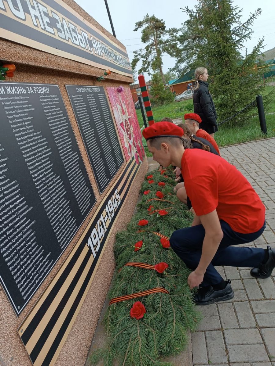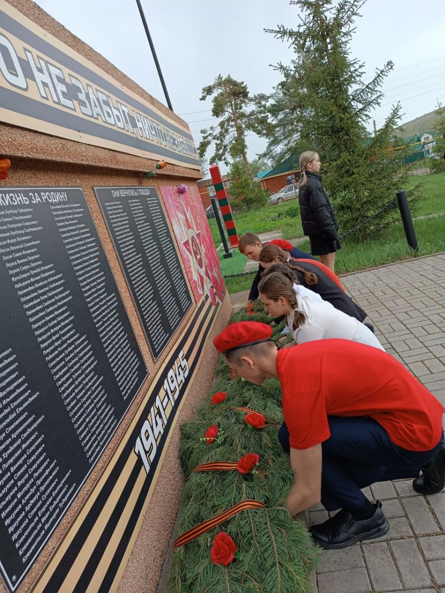 Активисты школы возложили праздничную гирлянду к Памятнику Победы