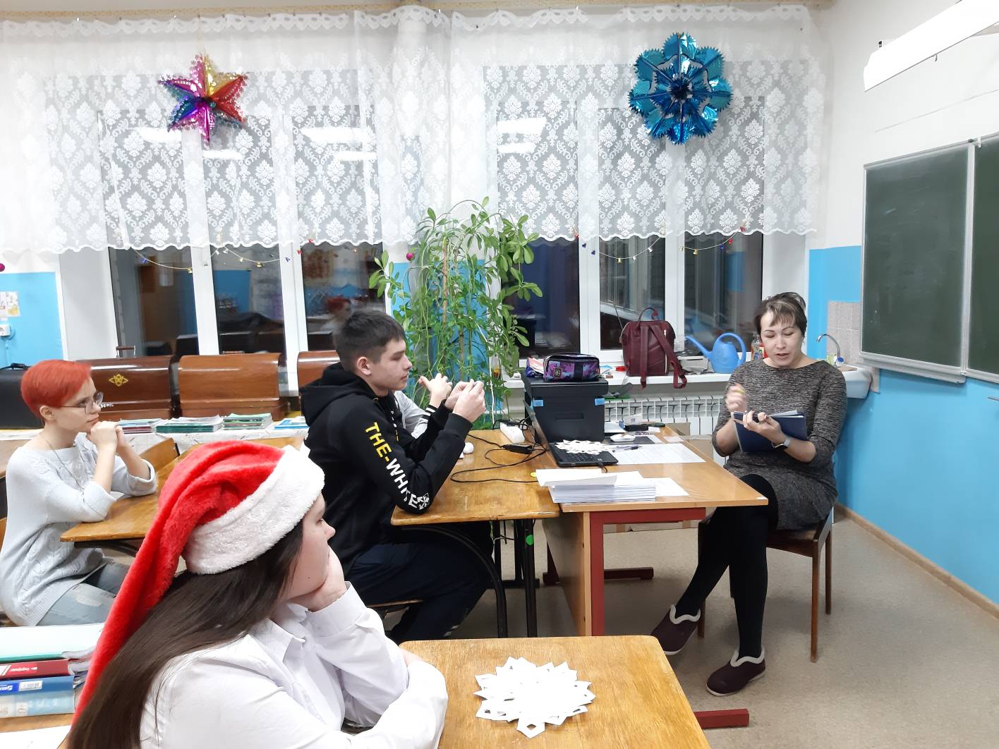 27 декабря в 7-10 классах была проведена новогодняя квест-игра. Учащиеся были поделены на две команды и выполняли задания по маршрутному листу. В качестве домашнего задания учащимися были подготовлены музыкальные номера.