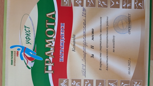 8 апреля 2022 г. сборная команда нашей школы приняла участие в районных соревнованиях по волейболу и заняла