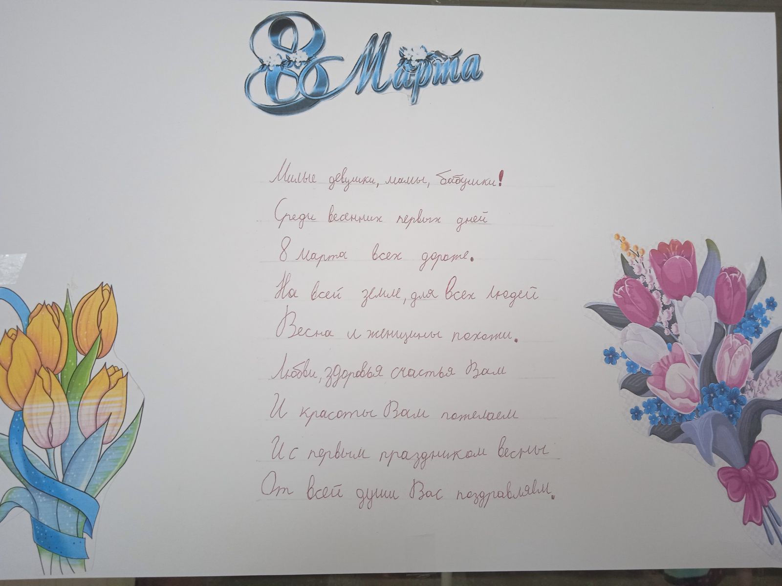 5 марта 2022 г. в рамках празднования Международного женского дня 8 марта классы подготовили выставку-поздравление