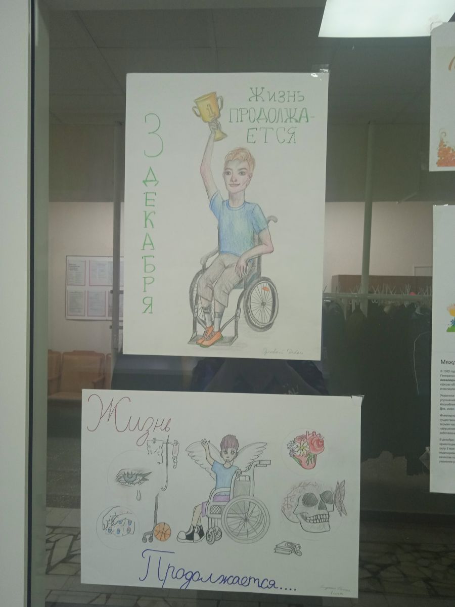 С 1 по 4 декабря была проведена выставка рисунков "Мы вместе" и выставка плакатов "Я такой же, как и ты"