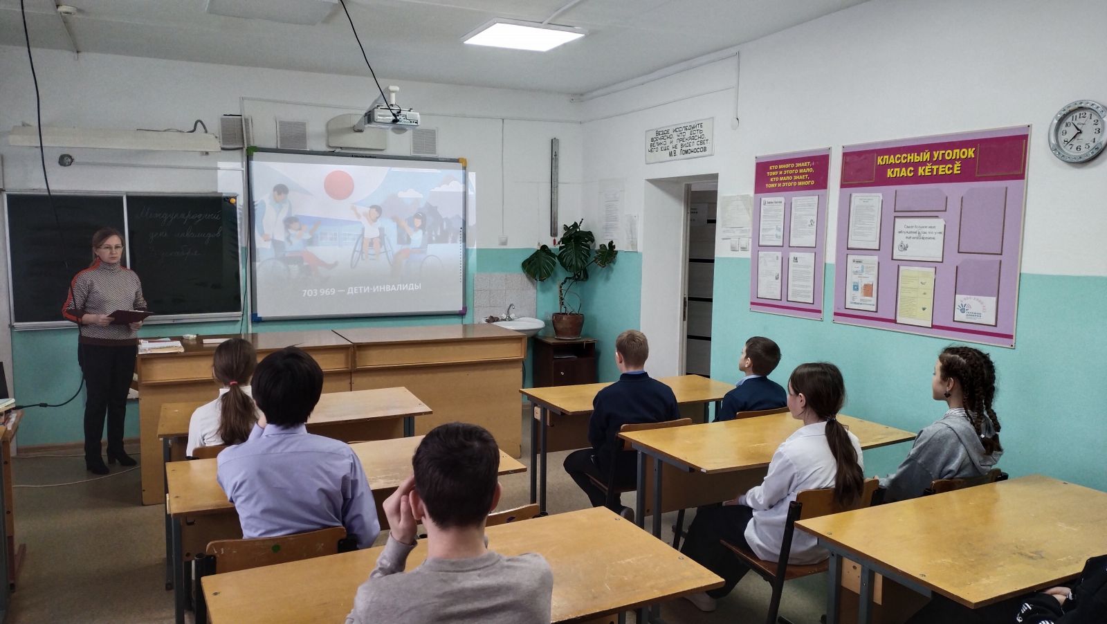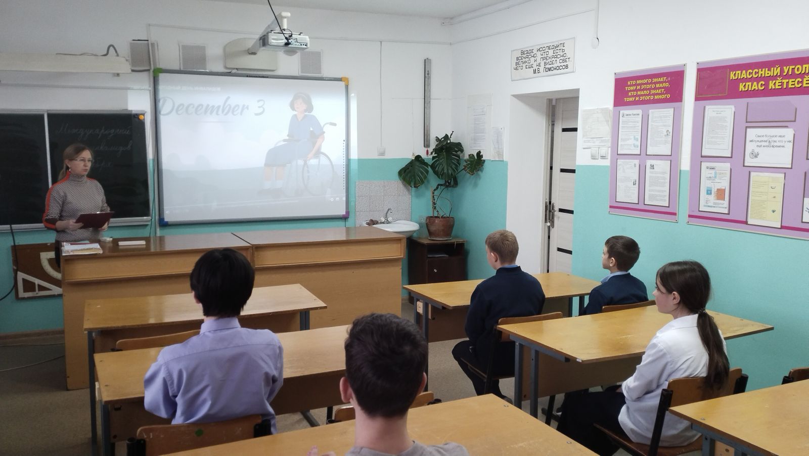 В рамках реализации плана по декаде инвалидов 1 декабря в 1-11 классах был проведен урок доброты "Мы - разные, но мы - едины"