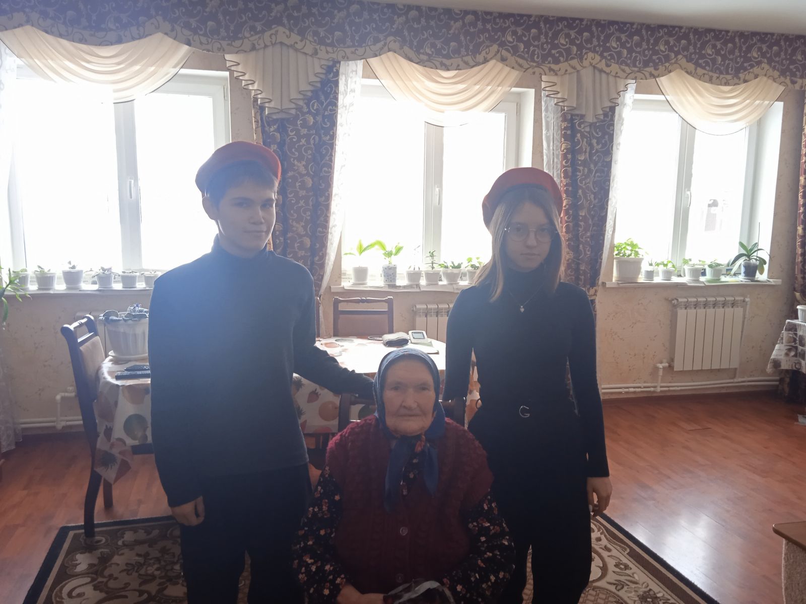 Опубликовано: 21.02.2023В рамках месячника патриотического воспитания учащиеся 10 класса посетили труженика тыла Сатыбалову Унеслу Сидуловну