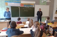 В рамках акции "Внимание,дети!" 9 сентября в школе состоялась встреча инспекторов ГИББД с учащимися 1-4 классов. В ходе встречи инспекторы ГИБДД рассказали учащимся о том, как правильно вести себя на дорогах, пешеходных переходах и в общественном транспорте, о необходимости использования световозвращающих элементов, о детских удерживающих устройствах для автотранспорта. Инспекторы отметили, что использование наушников с музыкой и мобильного телефона недопустимо при переходе проезжей части дороги. В конце встречи инспекторы полиции пожелали детям быть осторожными на дороге.