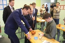Глава района ознакомился с работой образовательного учреждения, пообщался с воспитанниками и сотрудниками. В первую очередь, гостей ознакомили с хореографическим классом. Далее проследовали в кабинеты труда, посетили спортивный зал. В коридорах школы разместилась выставка учащихся, экспонаты которой выполнены в рамках кружковой работы. Не обошли стороной светлую и уютную столовую учреждения. Самая запоминающаяся часть встречи – лексико-грамматическое открытое занятие по логопедии в 4 классе. Учитель-логопед Алена Ветлугина использует современные методы в организации своей работы, благодаря чему школьники с большим желанием идут на контакт.