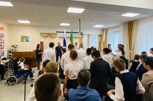 Учащиеся в торжественной обстановке прослушали гимны РФ и РТ.