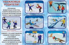 1. С появлением первого ледяного покрова на водоёмах запрещается катание на коньках, лыжах и переход. Тонкий лёд непрочен и не выдерживает тяжести человека.