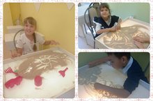 Наши воспитанники обожают заниматься рисованием на песочном столе