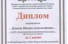 ПОЗДРАВЛЯЕМ!!! Крылова Михаила, студента 42 группы С победой в Республиканском этапе Всероссийской олимпиады профессионального мастерства обучающихся по укрупненной группе специальностей среднего профессионального образования 49.00.00 Физическая культура и спорт Коллектив колледжа гордится тобой! Так держать!!!