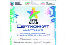 Танцевальная группа колледжа «Non stop» приняла участие в ежегодном фестивале первокурсников «Студ STAR-2016» Юго-востока республики Татарстан. В группе есть новички - девушки из первого курса: Дудина Юлия, Новикова Алена, Яшина Анастасия. Девушки выступили в номинации «Хореография» с новым танцем «Не танцуй». Группа получила сертификат участника фестиваля.