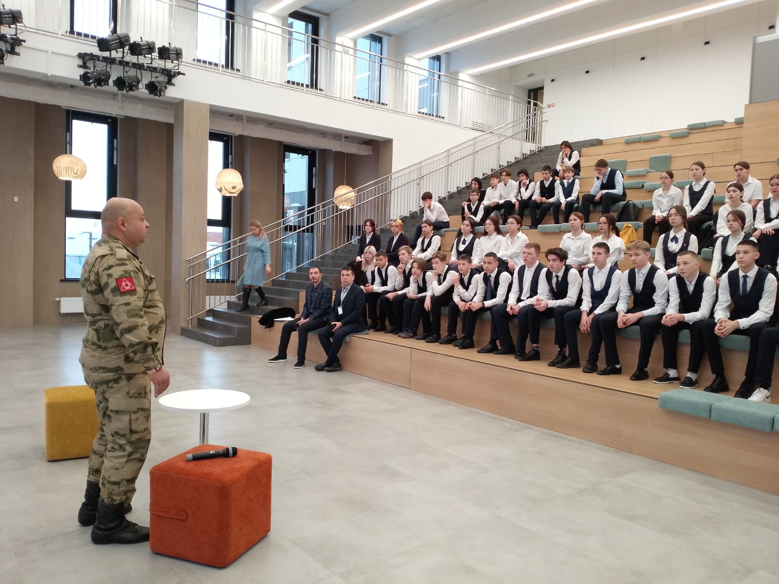 Коллектив Лицея выражает искреннюю благодарность семье Гатиных за уникальную возможность пообщаться с героем нашего времени, образцом мужества и стойкости. Желает всем участникам специальной военной операции успешного выполнения боевых задач и скорейшего возвращение домой живым и здоровым.