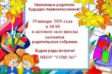 ИНФОРМАЦИЯ ДЛЯ РОДИТЕЛЕЙ БУДУЩИХ ПЕРВОКЛАССНИКОВ!!! 16.01.2020